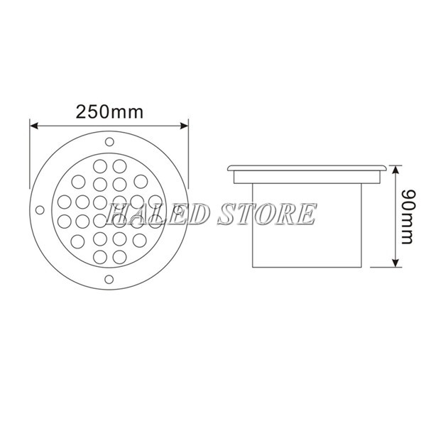 Kích thước đèn LED âm nước HLDAUWW5-24