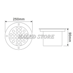 | Kích thước (mm) | Ø250 (230)xH90 |